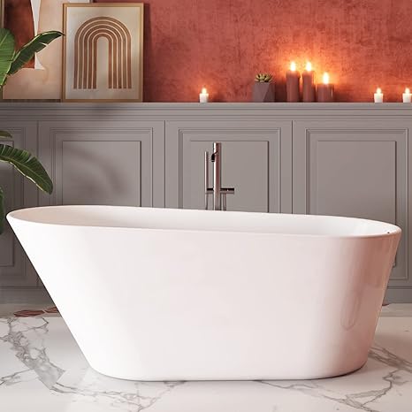 61" Acrylic Freestanding Bathtub, Single Slipper Free Standing Tub, Soaking Tub with Integrated Slotted Overflow, Toe-Tap Chrome Drain, cUPC Certified, Glossy White