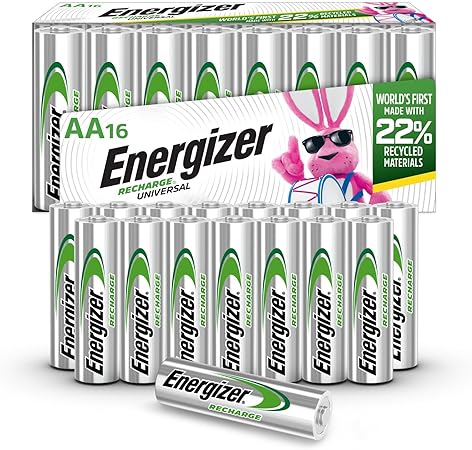 Energizer Recharge Universal Rechargeable AA Batteries (16 Pack), Double A Rechargeable Batteries