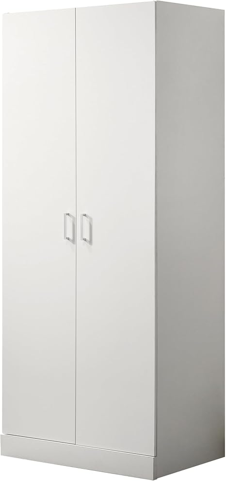 Michael White Double Door Wardrobe Cabinet Armoire with Shelf and Hanging Rod