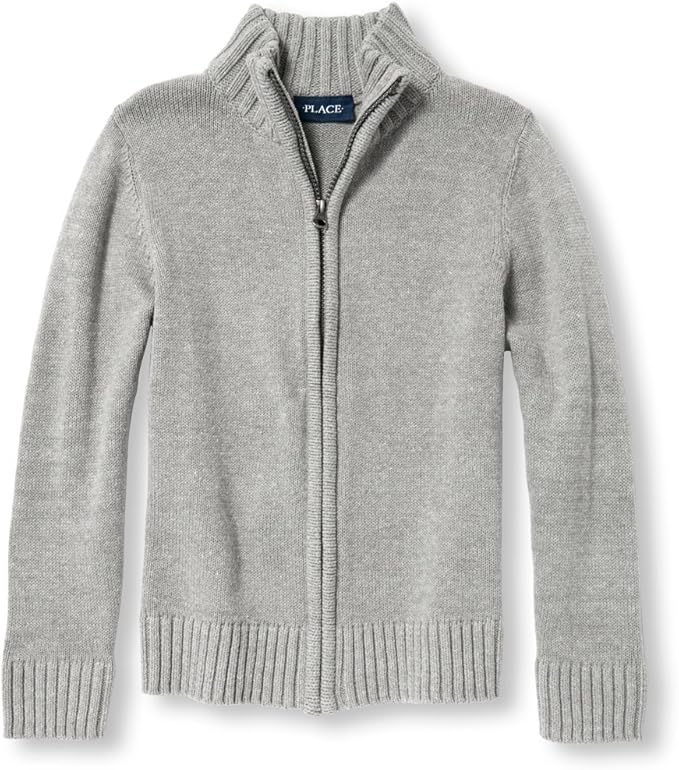 The Children's Place Boys' Uniform Zip Up Mock Neck Sweater
