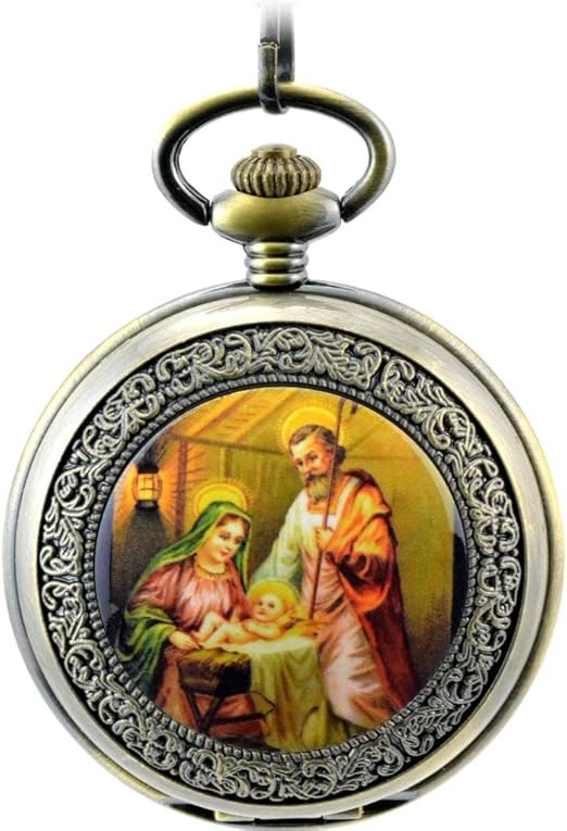 The Virgin Maria and Jesus Christ Roman Numerals Steel Mechanical Pocket Watch