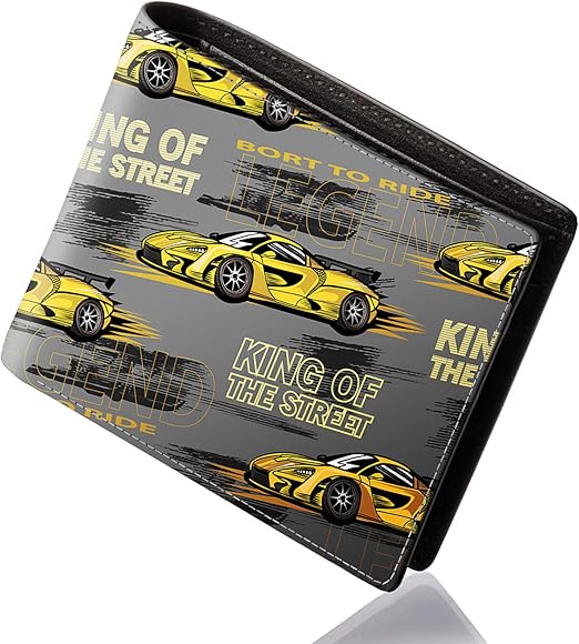 Cool Wallet for Boys - Teen Boys Wallet Car Print Thin Slim Leather Bi-Fold Rfid Blocking Zipper Purse with Coin Pocket ID Window Cash Holder Black for Teens Youth Guys Male
