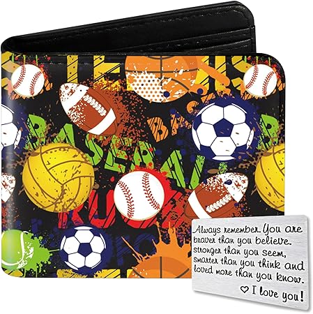 Teen Boys Wallet, Cool Balls Wallets for Kids Son 9-12/8-10/8-12 with Wallet Card, Funny Leather Bifold Rfid Blocking Wallet, Purse Coin Pocket Id Window for Men Boy Male Youth Guys Gifts
