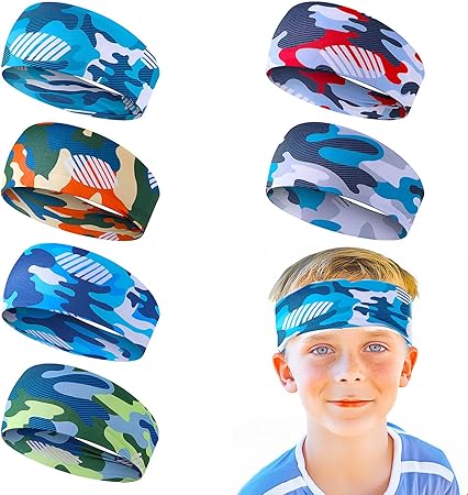 6Pcs Boys Sports Headbands, Breathable Kids Soccer Sweatbands Non-Slip Elastic Headband for Basketball Baseball