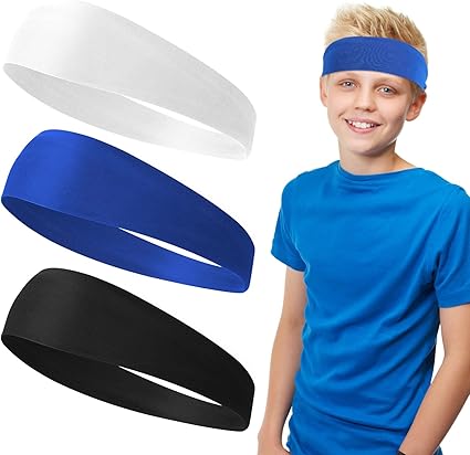 cobee 3 Pcs Kids Boys Headbands, Basketball Headbands for Kids, Breathable Sweatbands Hair Bands, Elastic Sweat Band for Football Basketball Running Tennis