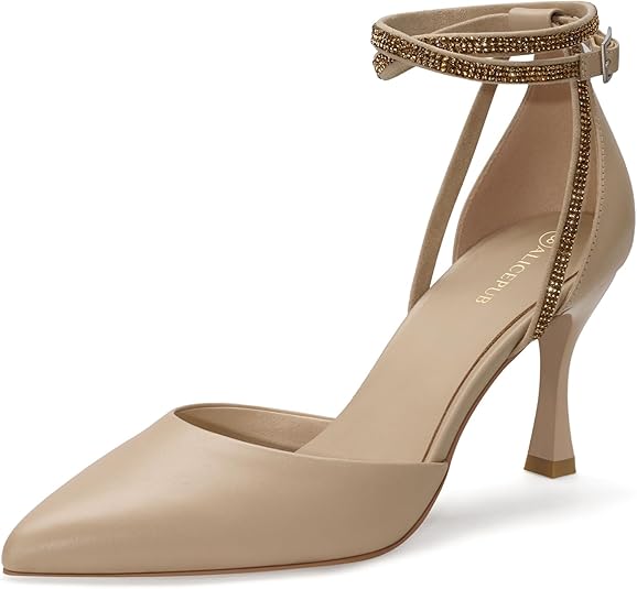 ALICEPUB Women's Closed Pointed Toe Heels Pumps Rhinestone Wedding Bridal Shoes for Bride 3Inch Stiletto Heels Dress Shoes for Women Party