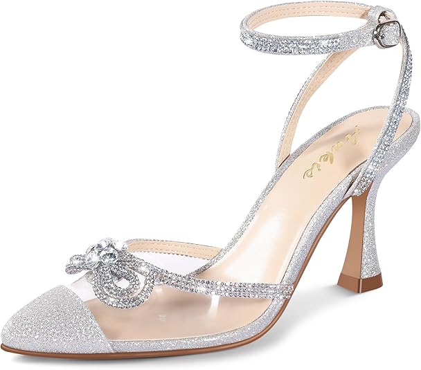 Ankis Women's Rhinestone Bow Heels Closed Toe Pumps Strappy Heels for Women