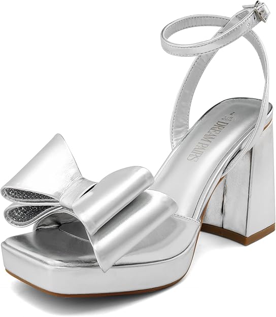 DREAM PAIRS Women's Platform Chunky Heels Fashion Bowknots High Block Square Toe Dress Sandals for Wedding Bridal Party