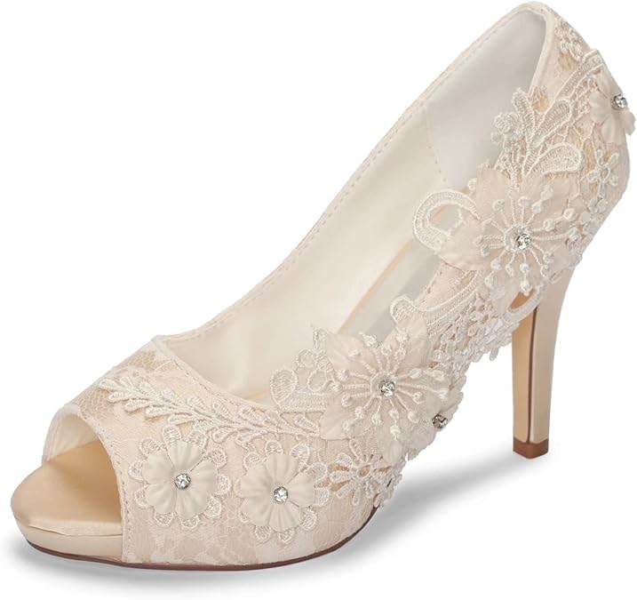 Emily Bridal Wedding Shoes Lace Wedding Shoes Ivory Lace Peep Toe High Heel Bridal Shoes
