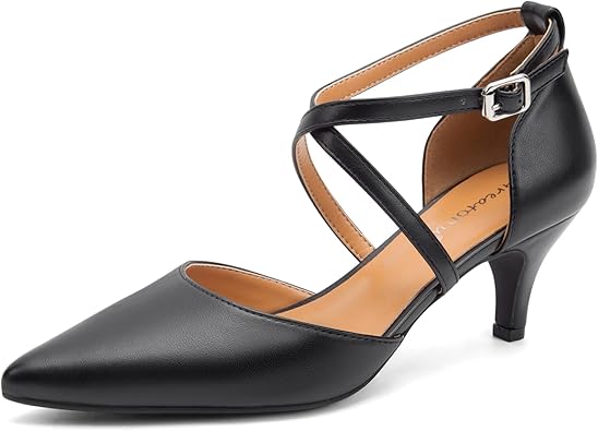 Greatonu Women's Low Heel Pumps Pointed Toe Bridal Wedding Party Kitten Heel Pump Shoes