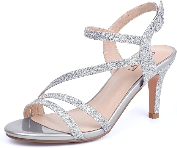 IDIFU Women's Black Nude White Silver Heels for Women Dress Kitten Heels Strappy Open Toe Heels Sandals Wedding Evening Party Shoes for Women Ladies Bridal