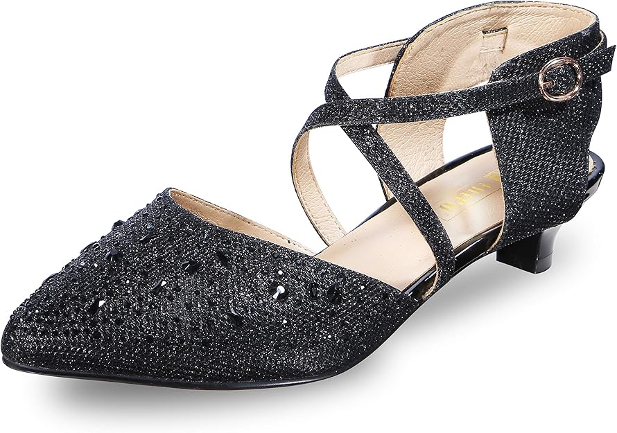 IDIFU Women's Sequins Wedding Kitten Small Heel Shoes Ankle Strap Bridal Bride Dance Dress Shoes - Silver Gold Black