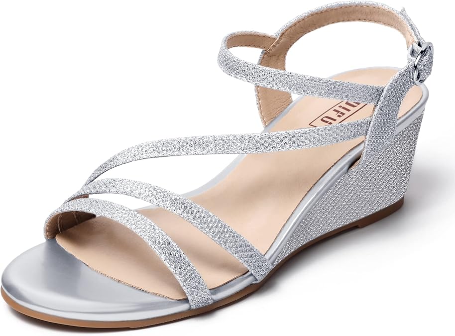 IDIFU Women's Wedge Heel Sandal Dress Low Strappy 2 Inch Open Toe Wedding Bridal Shoes for Woman Ladies Evening Formal