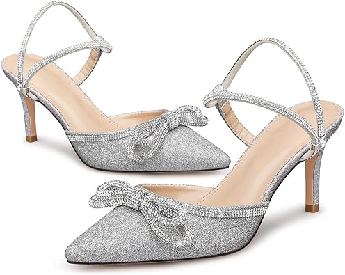 RIBONGZ Women's Wedding Shoes Glitter Sparkly Pointed Toe Strappy High Heels Sexy Ankle Strap Pumps Bridal Party Work Dress Shoes