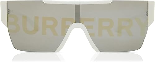 Burberry BE 4291 3007/H White Plastic Rectangle Sunglasses Silver Burberry Logo Lens