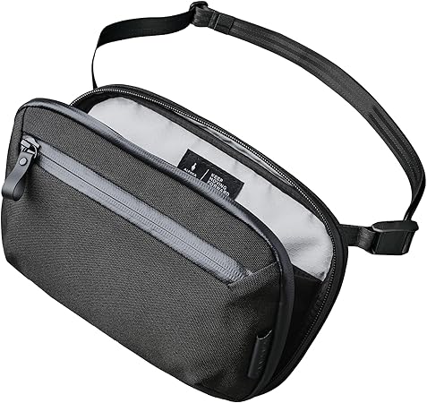 ALPAKA Elements Tech Case Mini - Small Travel Organiser Tech Case with Weatherproof Zippers, Adjustable & Detachable Strap for Men, Black Axoflux 600D