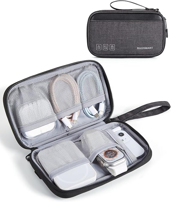 BAGSMART Small Travel Cable Organizer, Tech Organizer for Charger, Phone, Black