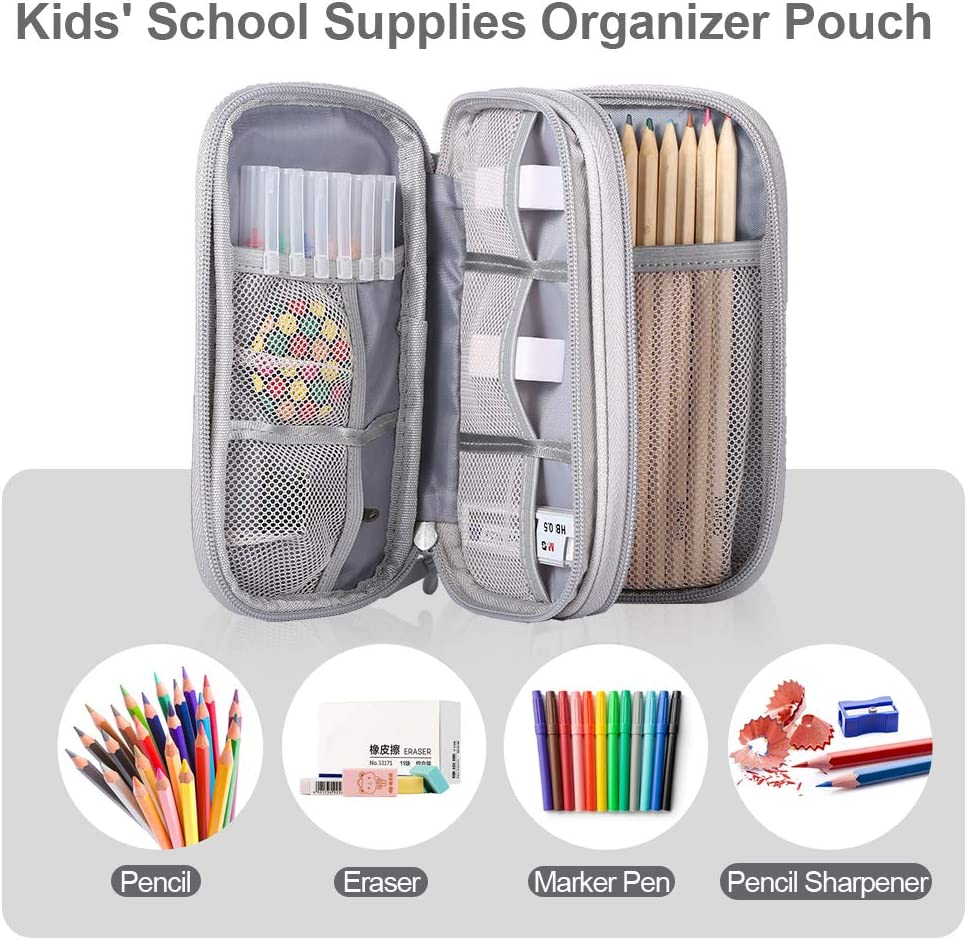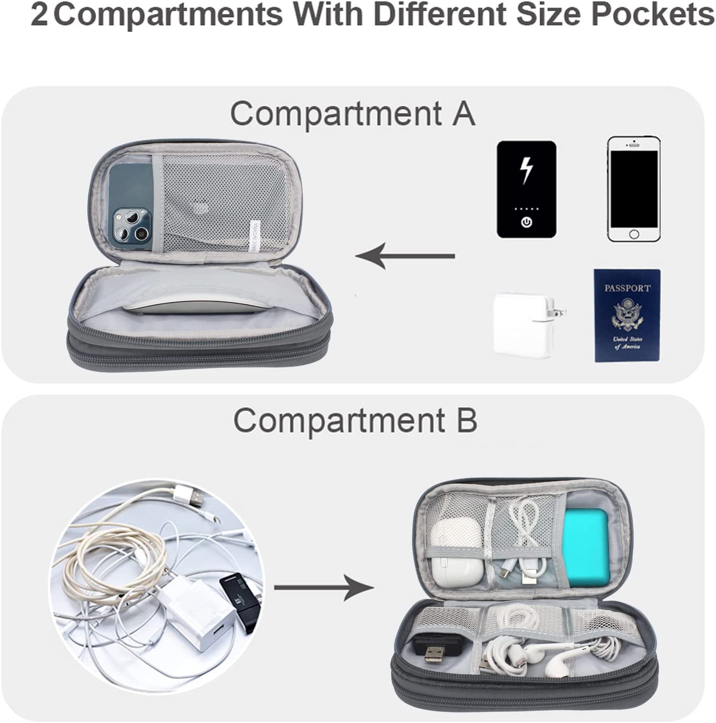 • 2 Compartments Design: This tech pouch organizer comes with 2 Compartments With Different Size Pockets, designed to store your tech stuffs & keep them organized. It can hold small certificates ( like passports, driver’s license), electronic gadgets (such as power bank, external hard drive, SD memory card, cables, earphone, connector adapter), and students’ stationeries (like pens, pencils, highlighters, gel pens & erasers)