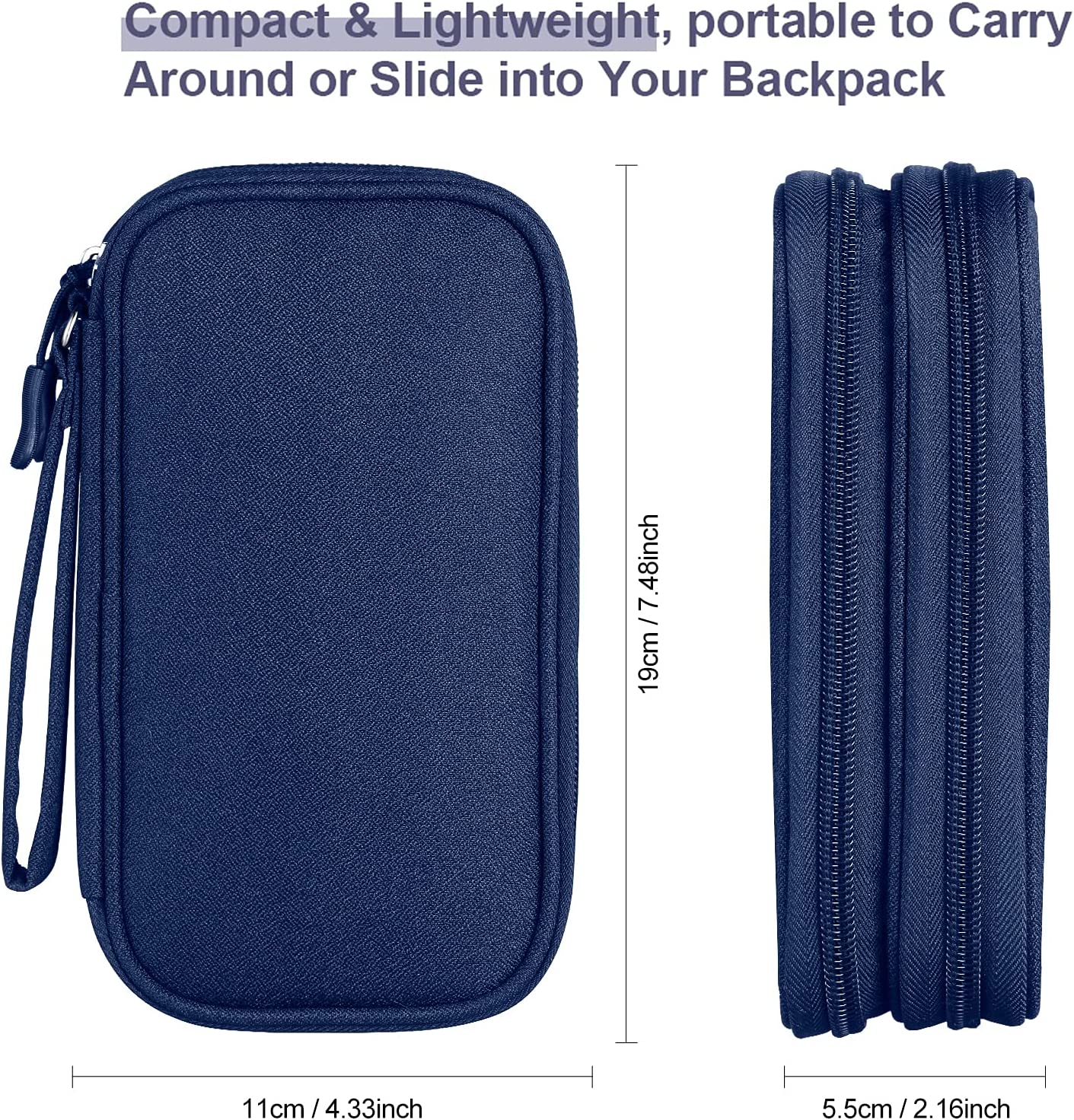 • Slim Sleeve Companion This electronics accessories carrying bag is compact & lightweight. It is about the size of your wallet/purse, with dimension: 7.48 x 4.33 x 2.16 inch, can hold the biggest iPhone, Also it is lightweight, only 117 grams, will be easy & convenient to use in daily life.