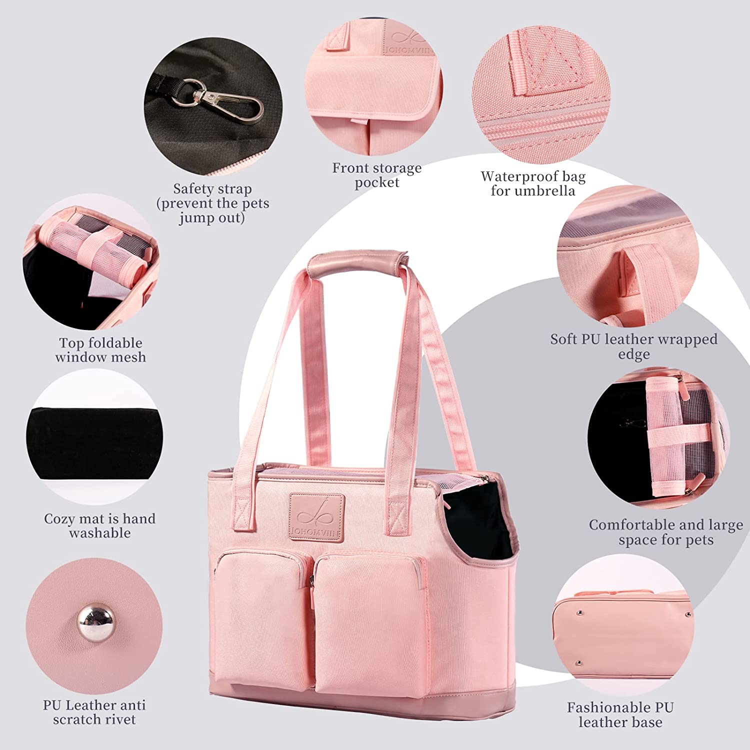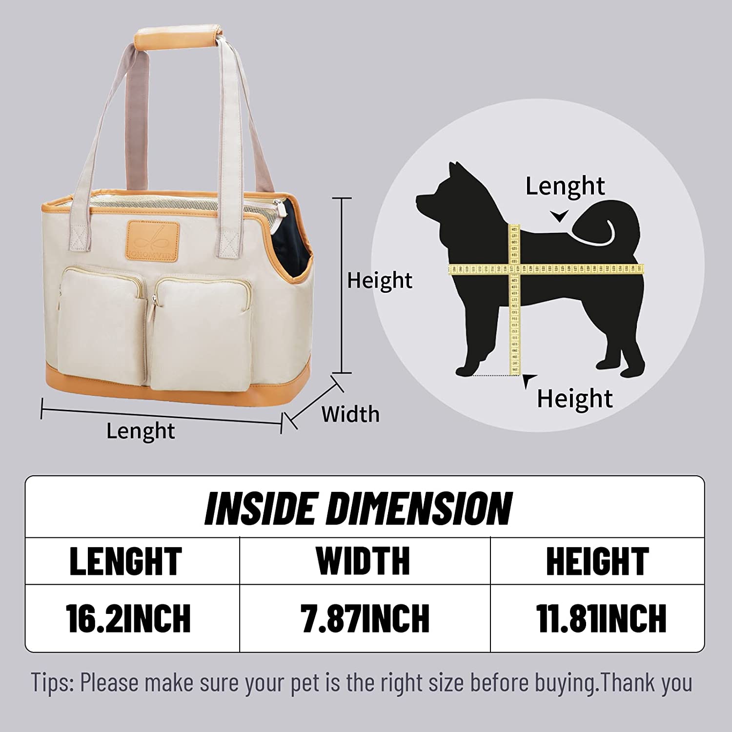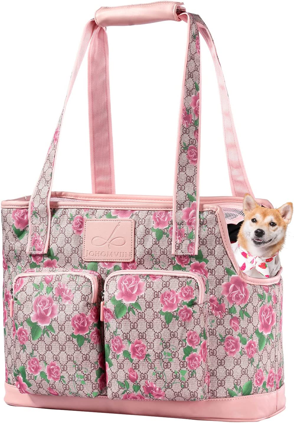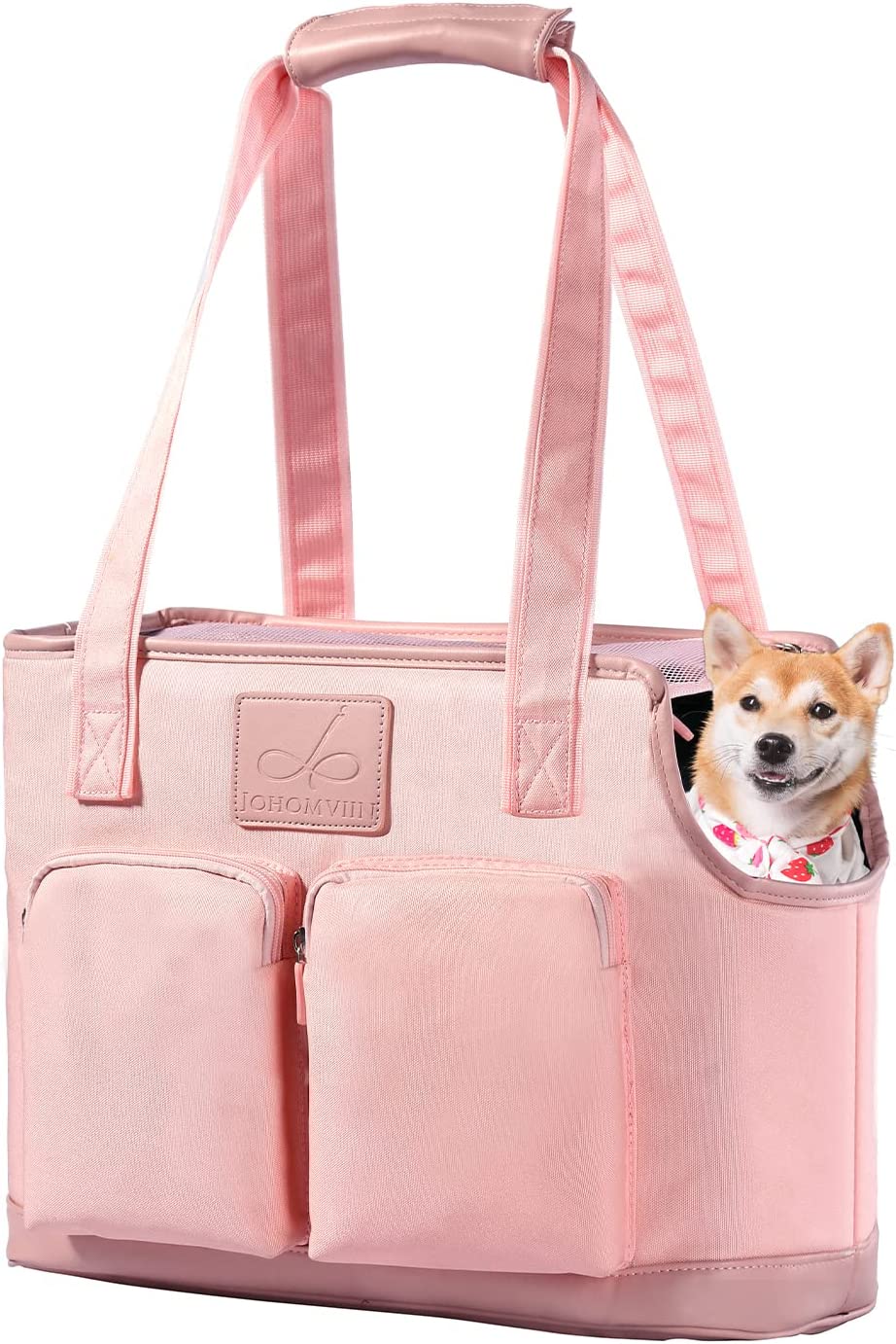 Johomviin Dog Carrier Purse, Foldable Waterproof Premium PU Leather Oxford Cloth Dog Carrier Bag, Pet Travel Tote Bag with Pockets for Cat and Small Dog