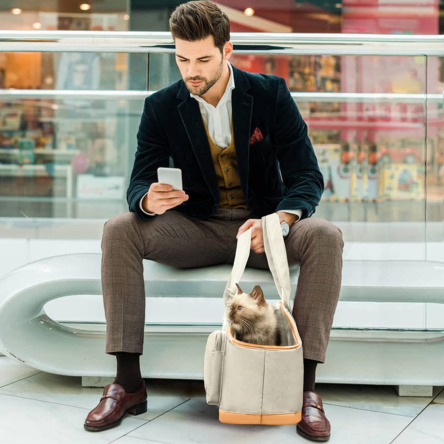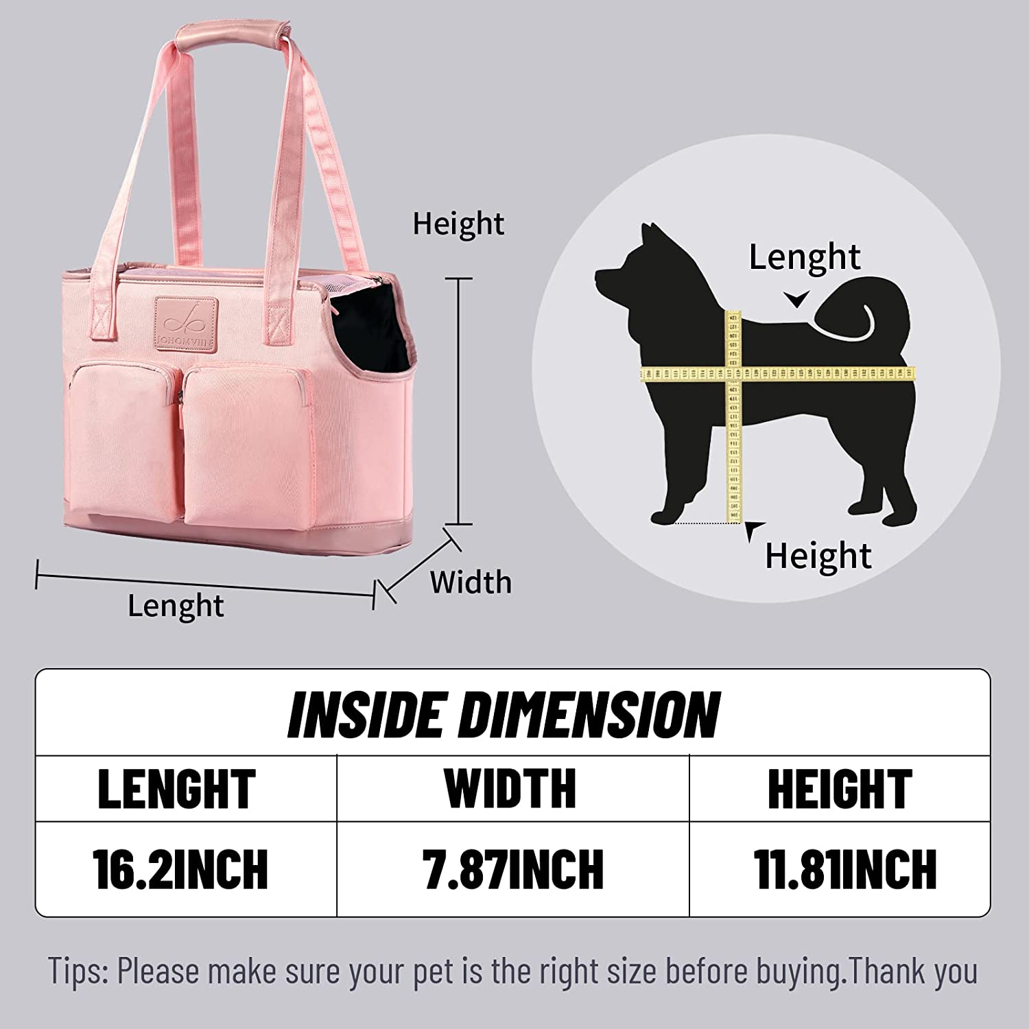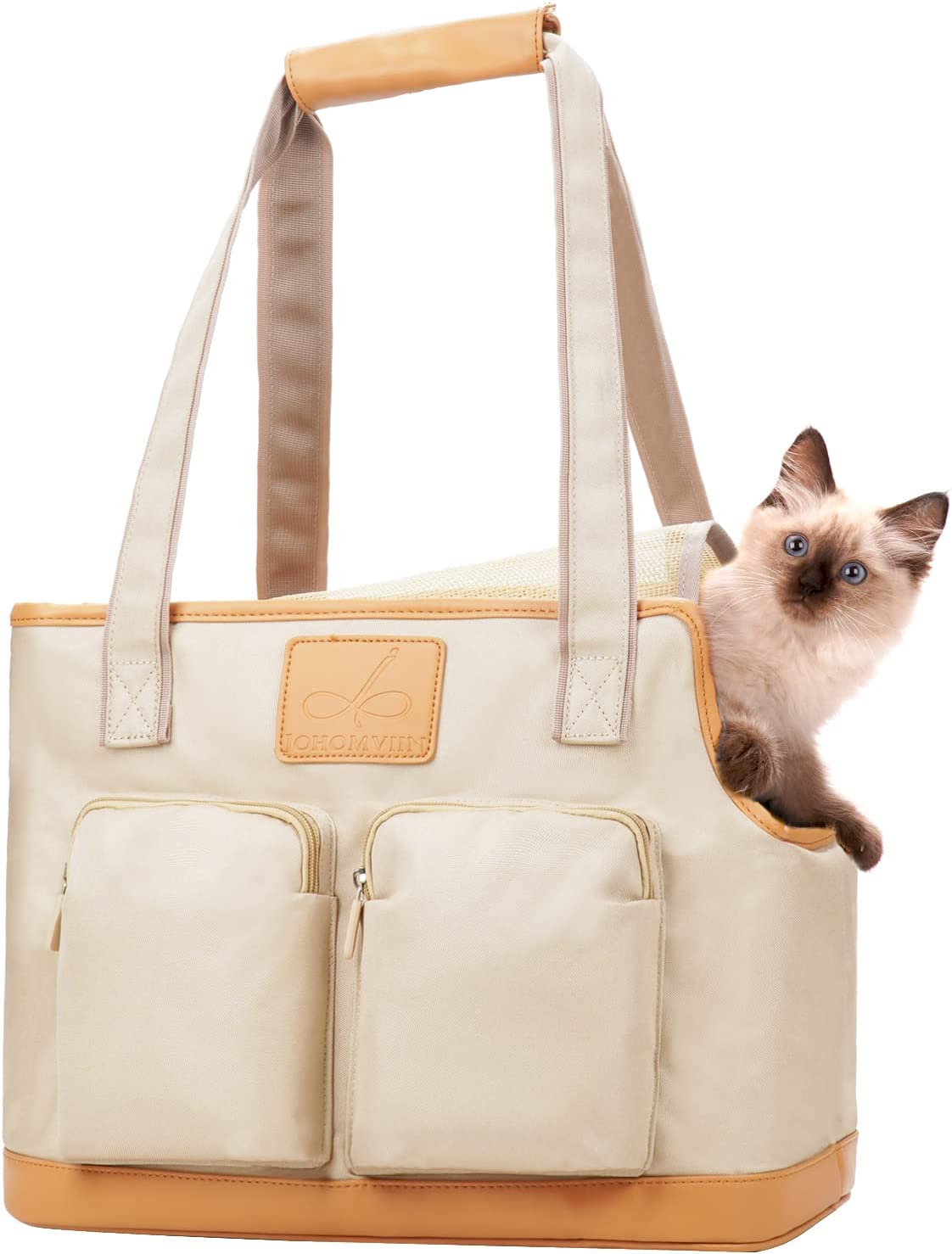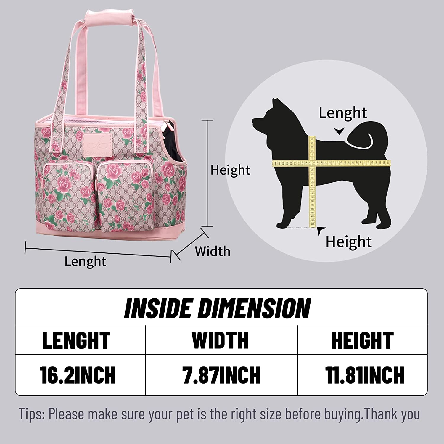 Johomviin Dog Carrier Purse, Foldable Waterproof Premium PU Leather Oxford Cloth Dog Carrier Bag, Pet Travel Tote Bag with Pockets for Cat and Small Dog
