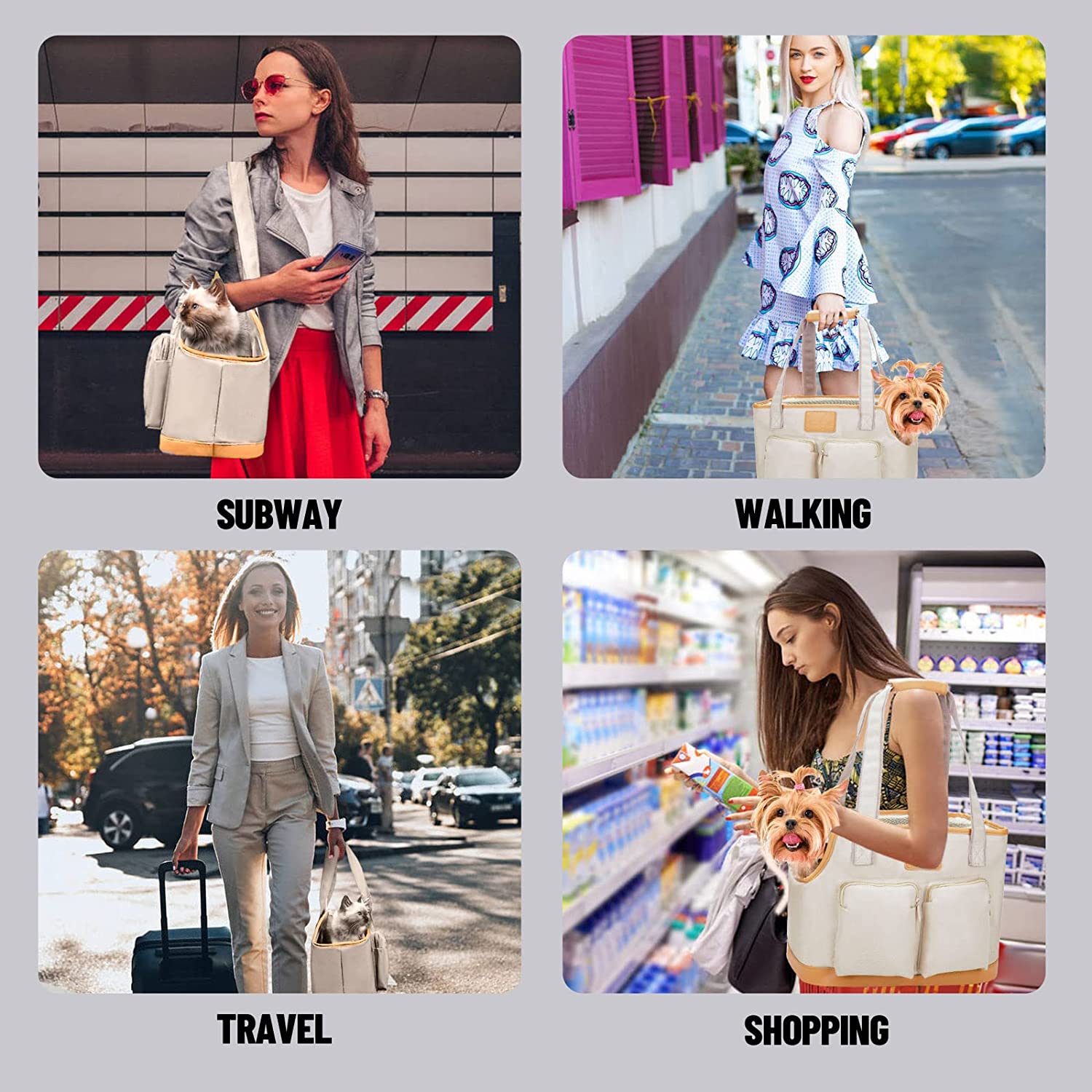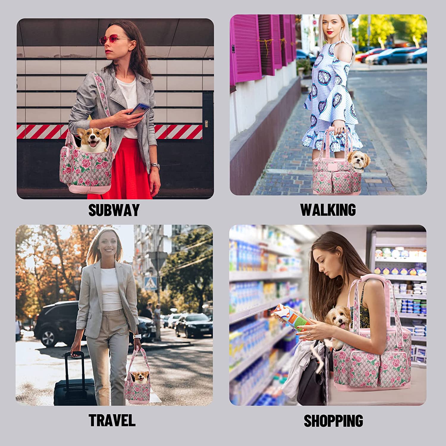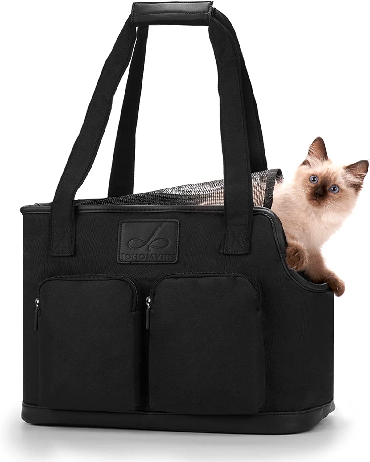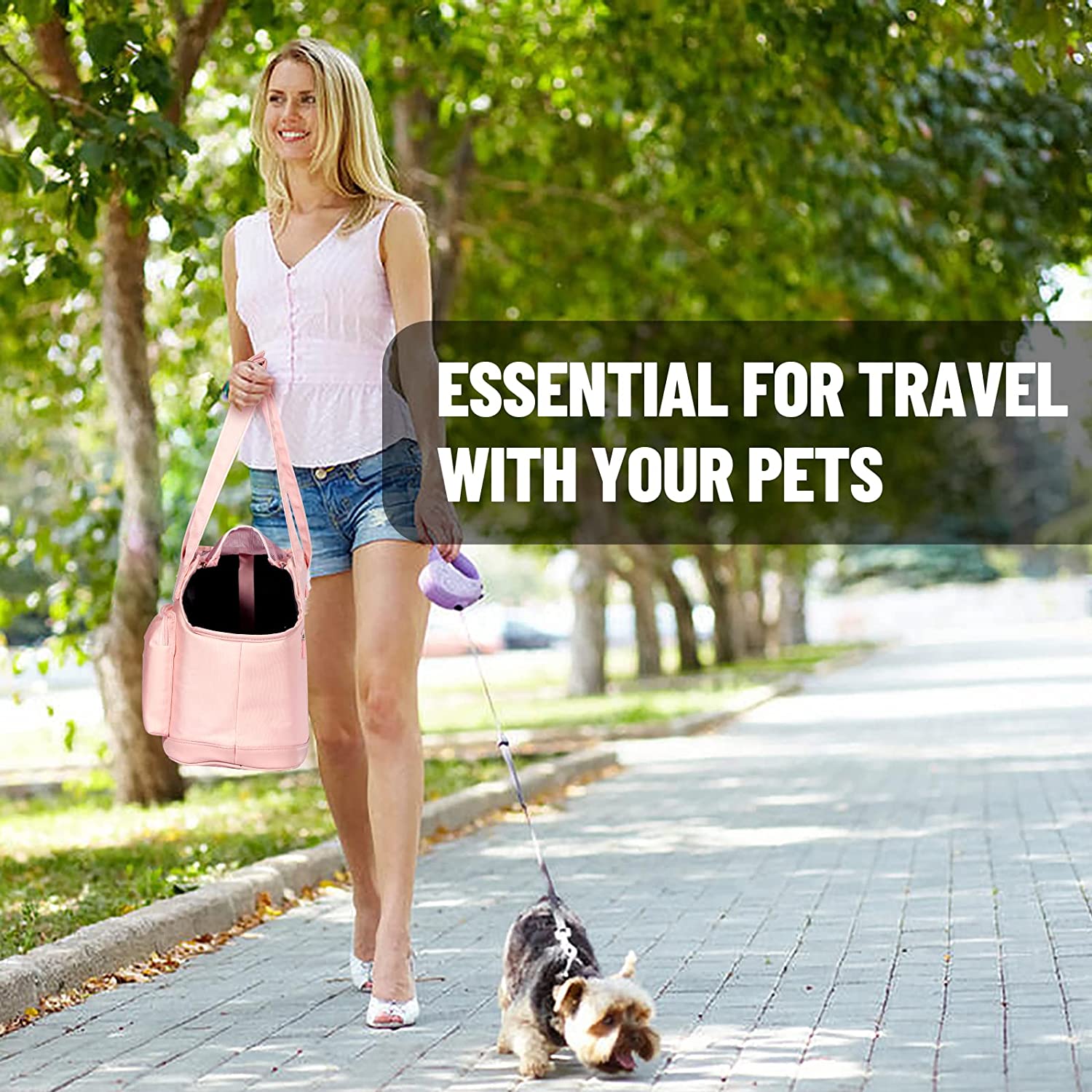 Johomviin Dog Carrier Purse, Foldable Waterproof Premium PU Leather Oxford Cloth Dog Carrier Bag, Pet Travel Tote Bag with Pockets for Cat and Small Dog