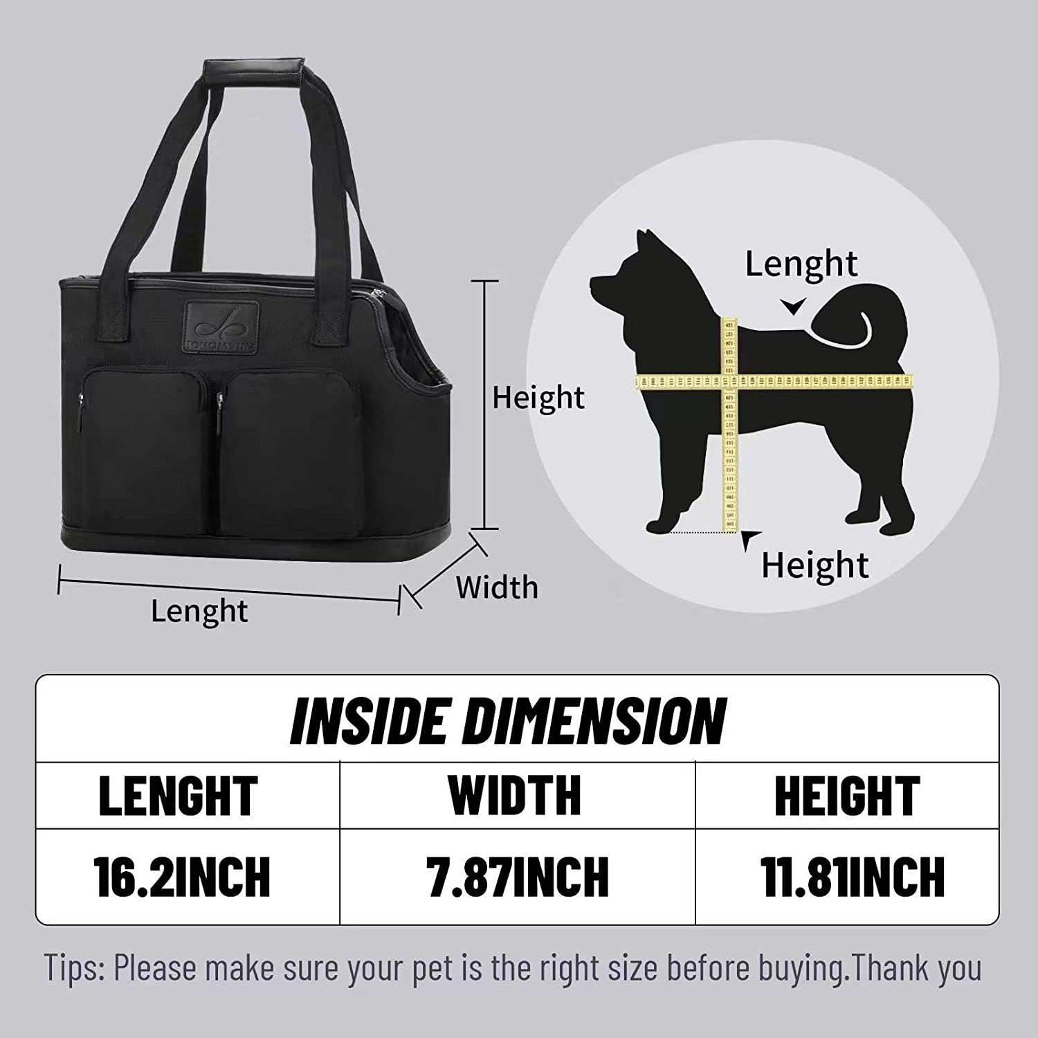 • 【Suitable size】Product dimensions:16.2"(Length) x7.87" (Width)x 11.81"(Height), a suitable size for most puppies、cats, and other small pets [★★★Note: Please confirm the size of the pet and pet carrier before purchasing, so as not to cause product size problems. Thank you ★★★ ]. The carrier is approved for most major airlines, but it is recommended to first confirm this with your airline.