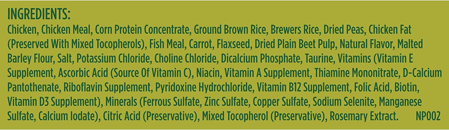 • Real chicken is the number one ingredient and Small kibble is easy to chew and swallow, keeping the crisp, crunchy texture and big flavor.