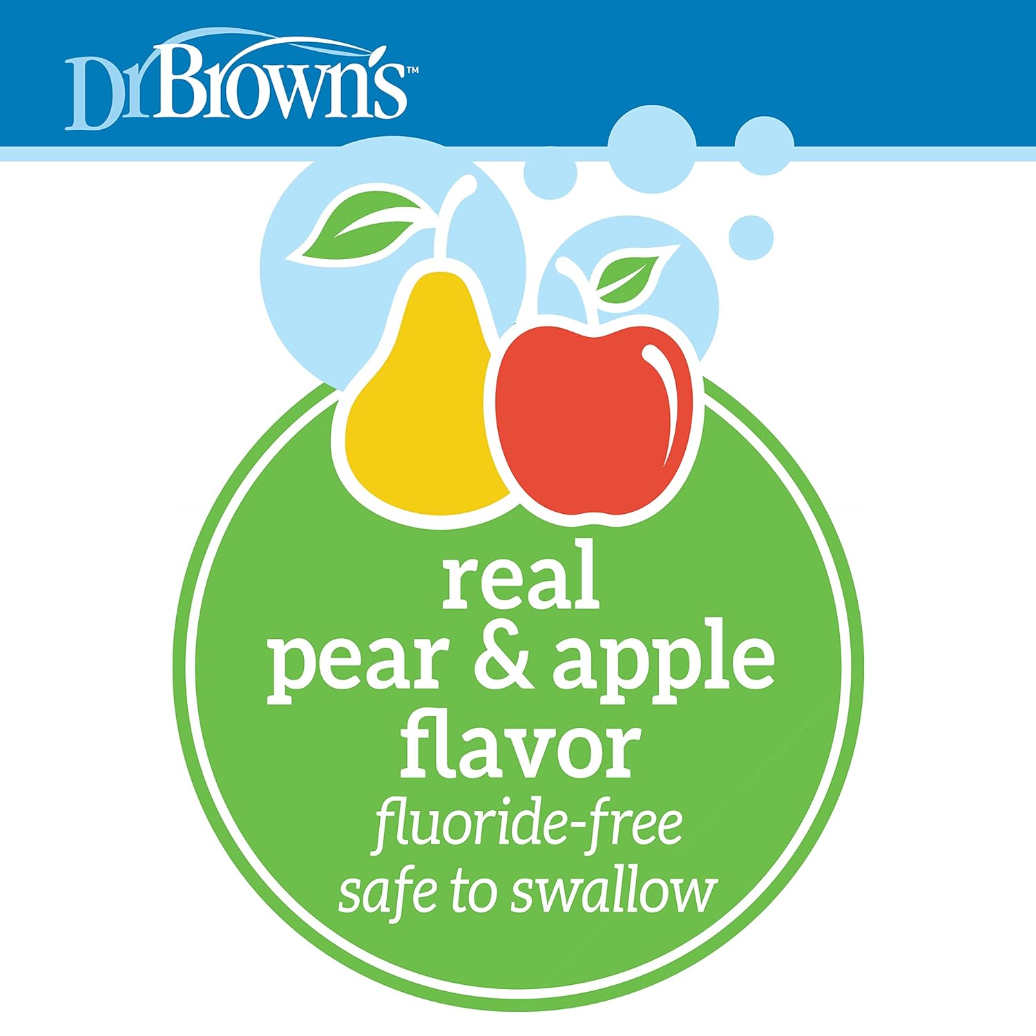 • FLUORIDE-FREE TOOTHPASTE. Dr. Brown’s Fluoride-Free Apple Pear Baby Toothpaste safely and effectively cleans with no fluoride, artificial flavors, or colors.