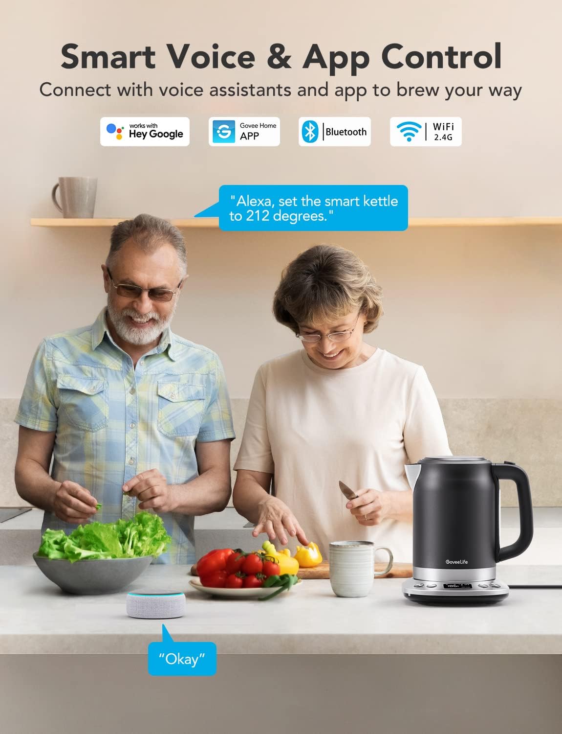 Govee Life Smart Electric Kettle Temperature Control, WiFi Electric Tea Kettle with Alexa Control, 1500W Rapid Boil, 2H Keep Warm, 1.7L BPA Free Stainless Steel Water Boiler for Tea, Coffee, Oatmeal