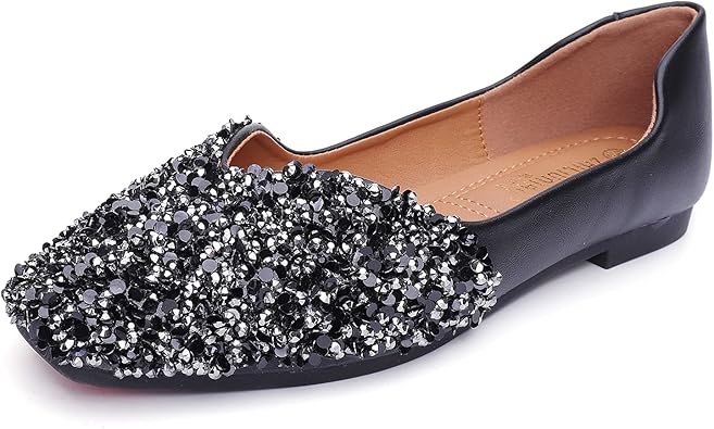 Flats Shoes Women Rhinestone Square Fashion Ballet Flats Wedding Flats for Women Comfortable Slip on Low Heel Dress Shoes