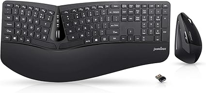 Perixx Periduo-605, Wireless Ergonomic Split Keyboard and Vertical Mouse Combo, Adjustable Palm Rest and Membrane Low Profile Keys, Black, US English Layout (11633)