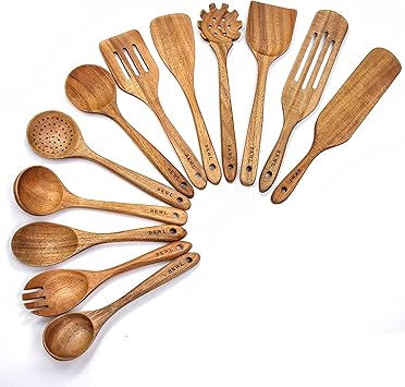 Wooden Spoons for Cooking, 12Pcs Wooden Utensils for Cooking Wooden Kitchen Utensils Set Wooden Cooking Utensils Wooden Spatulas_Ü_