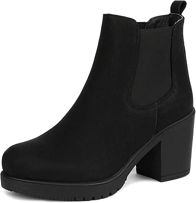 DREAM PAIRS Women's High Chunky Heel Chelsea Ankle Boots Slip On Elastic Fall Heeld Booties Shoes