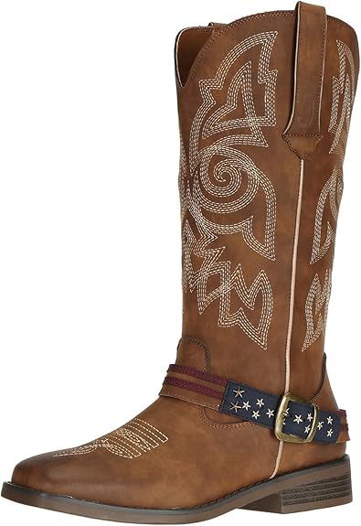 J's.o.l.e Women's Fashion Western Cowgirl Cowboy Boots Wide Square Toe Mid Calf