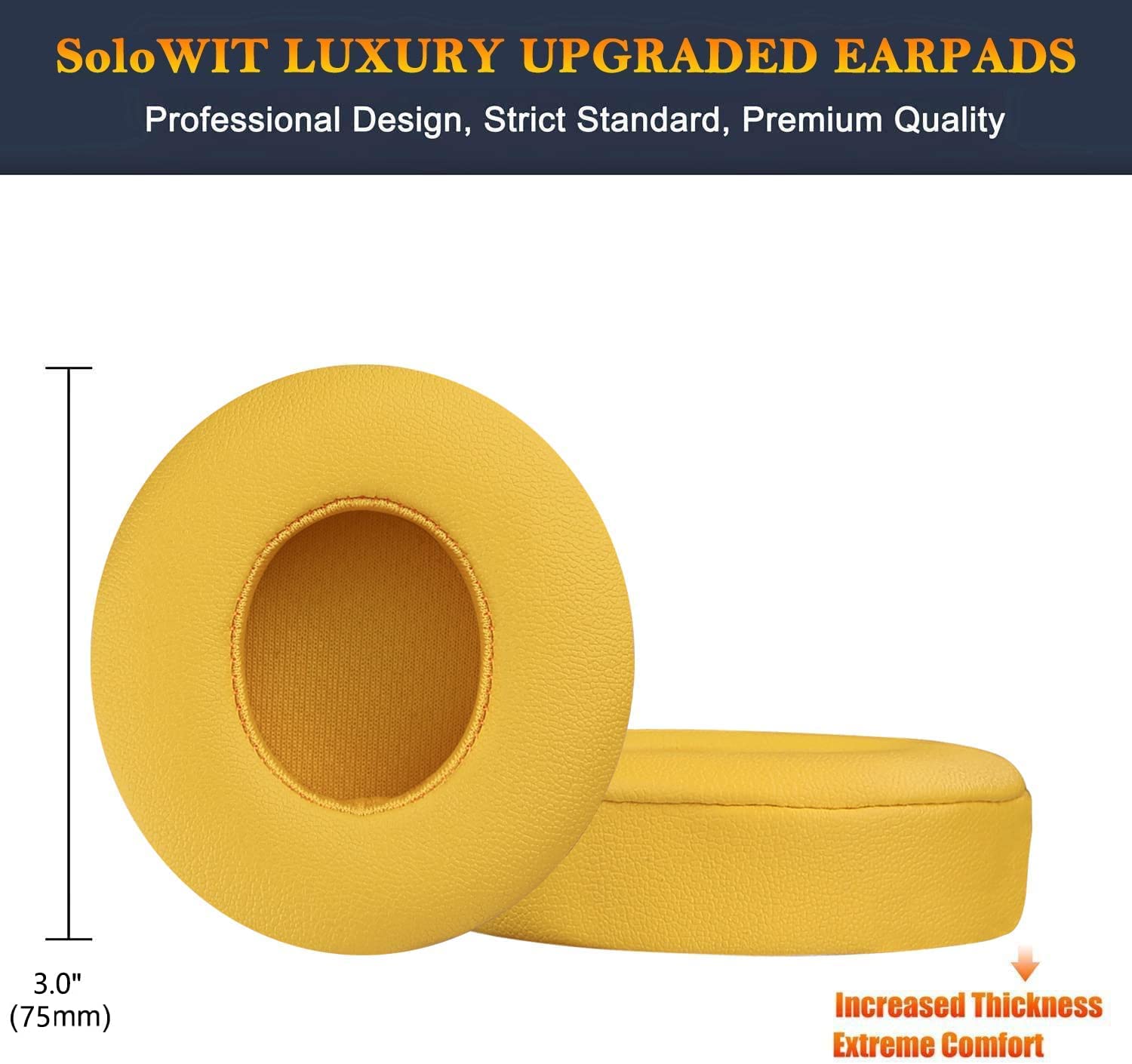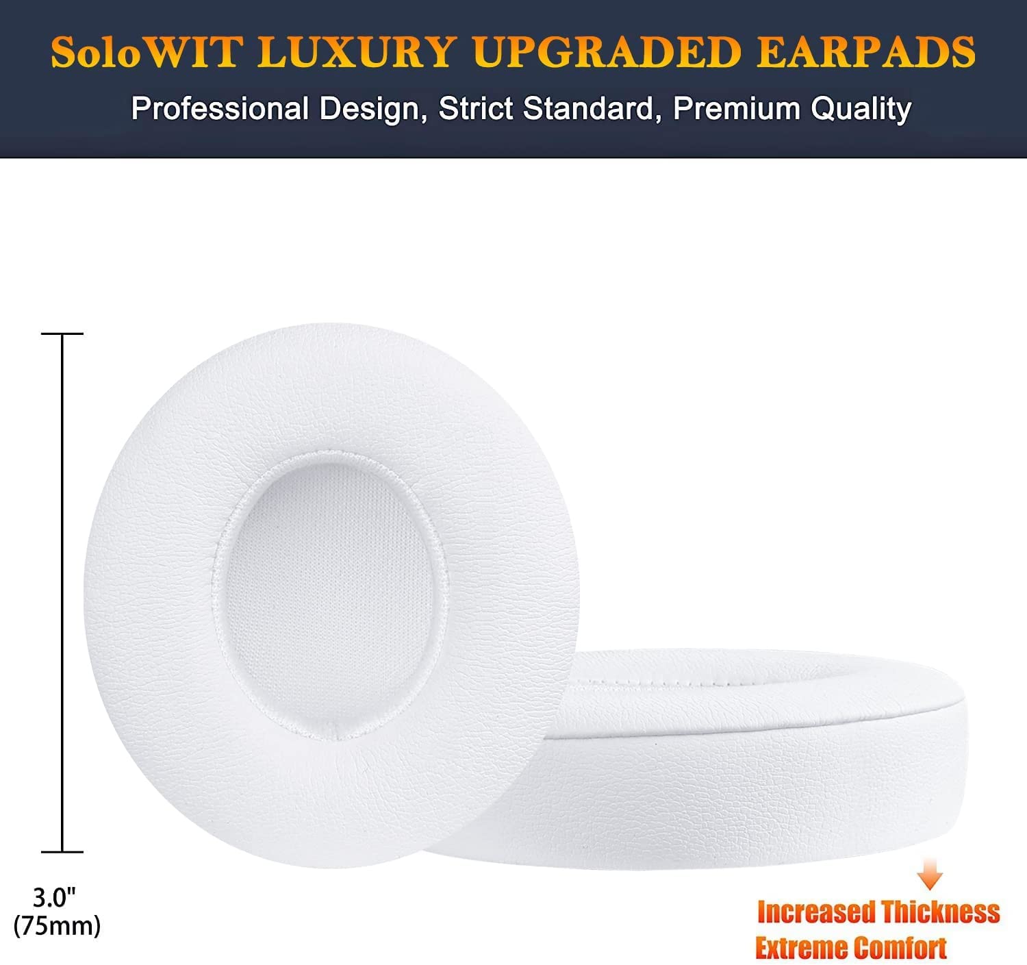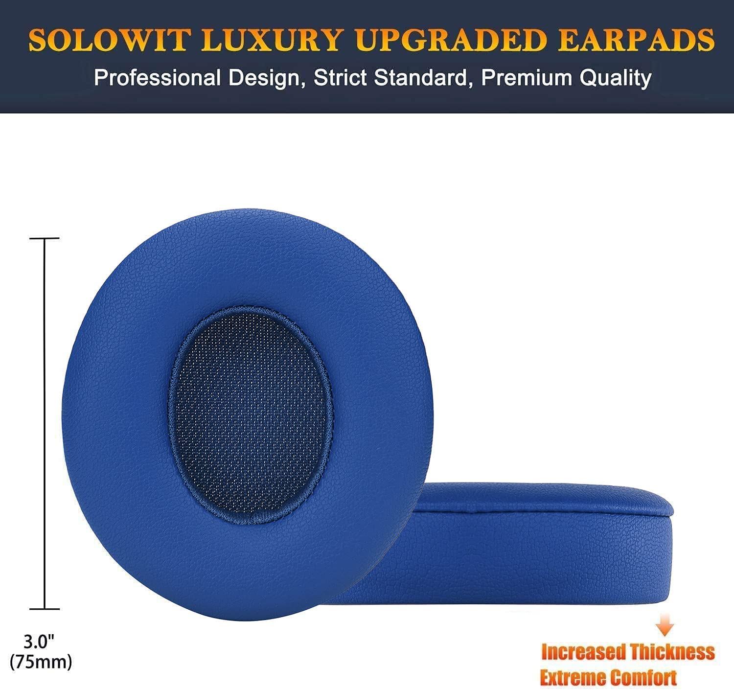 SoloWIT Earpads Cushions Replacement for Beats Solo 2 & Solo 3 Wireless On-Ear Headphones, Ear Pads with Soft Protein Leather, Added Thickness - (White)