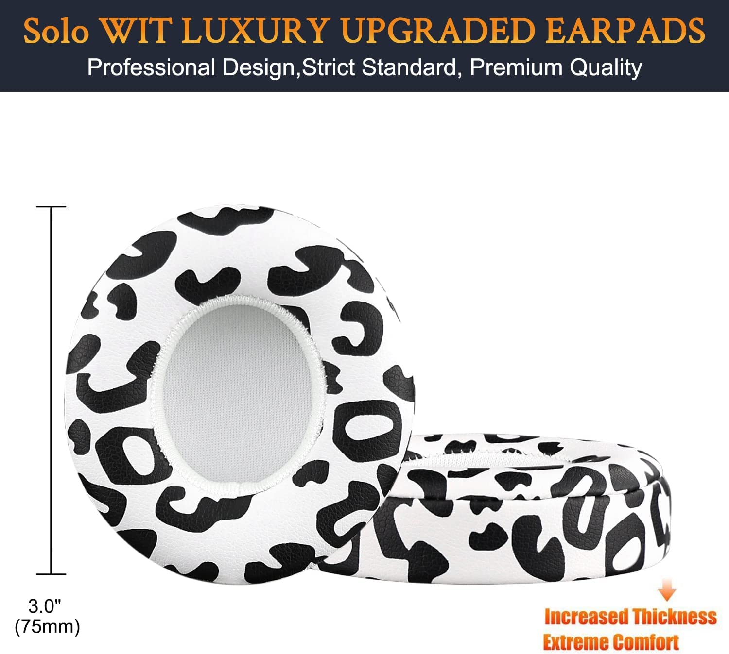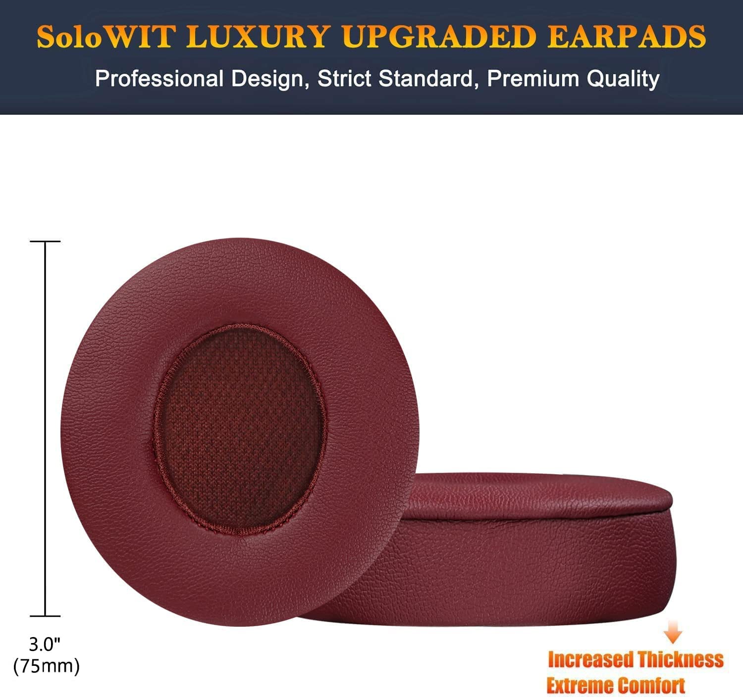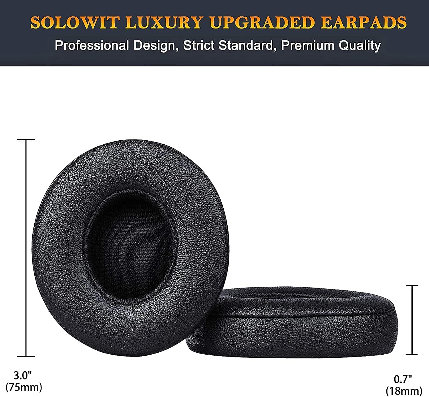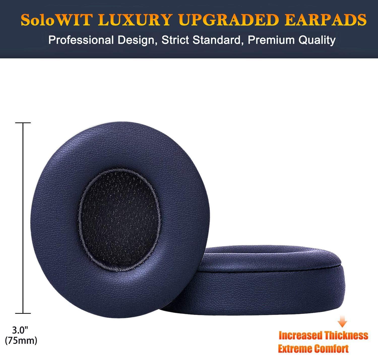 SoloWIT Earpads Cushions Replacement for Beats Solo 2 & Solo 3 Wireless On-Ear Headphones, Ear Pads with Soft Protein Leather, Added Thickness - (White)
