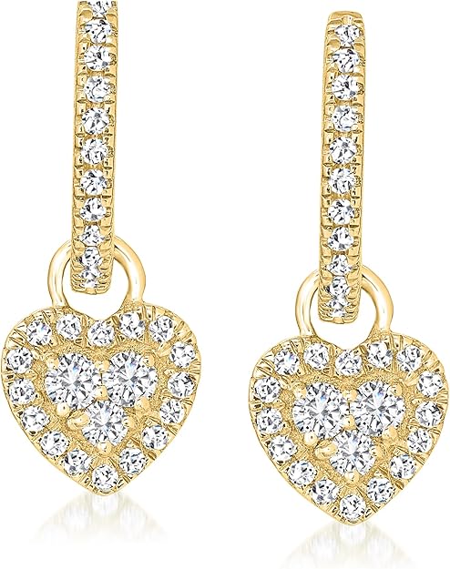 Ross-Simons 0.41 ct. t.w. Diamond Removable Heart Huggie Hoop Drop Earrings in 14kt Yellow Gold