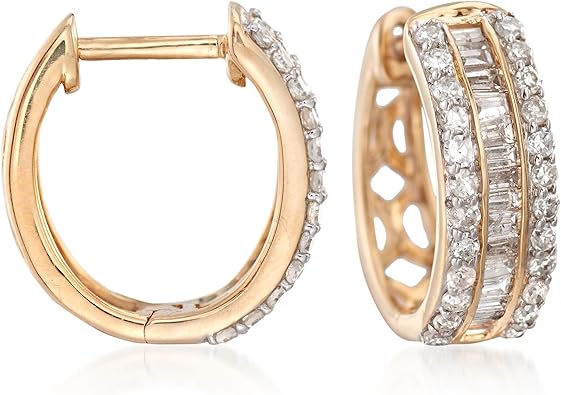 Ross-Simons 0.50 ct. t.w. Baguette and Round Diamond Huggie Hoop Earrings in 14kt Yellow Gold