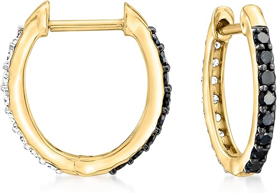 Ross-Simons 0.50 ct. t.w. Black and White Diamond Reversible Huggie Hoop Earrings in 14kt Yellow Gold