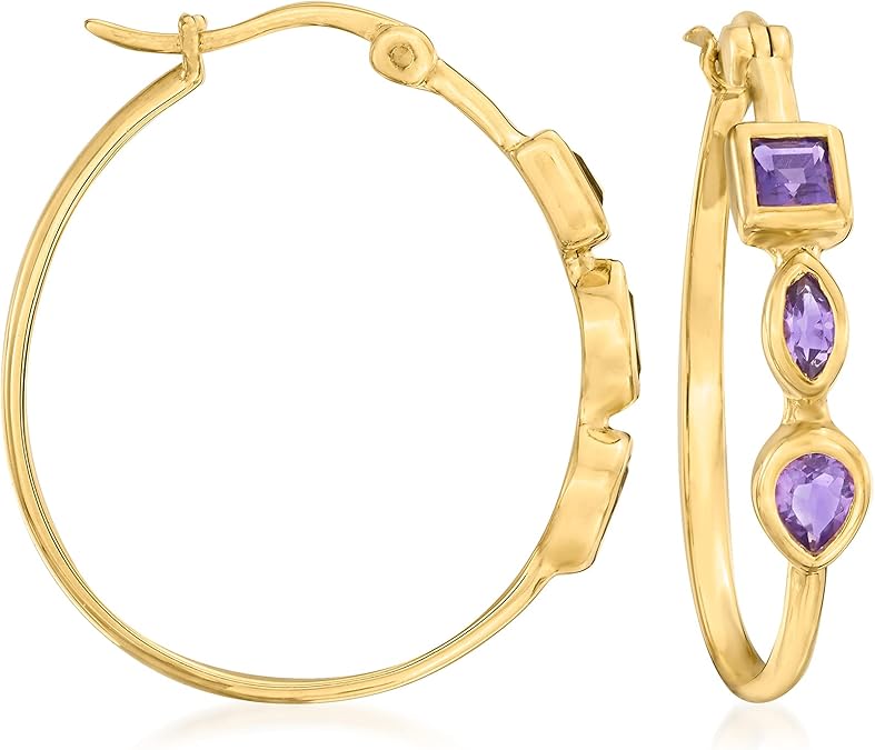 Ross-Simons 0.70 ct. t.w. Amethyst Hoop Earrings in 18kt Gold Over Sterling