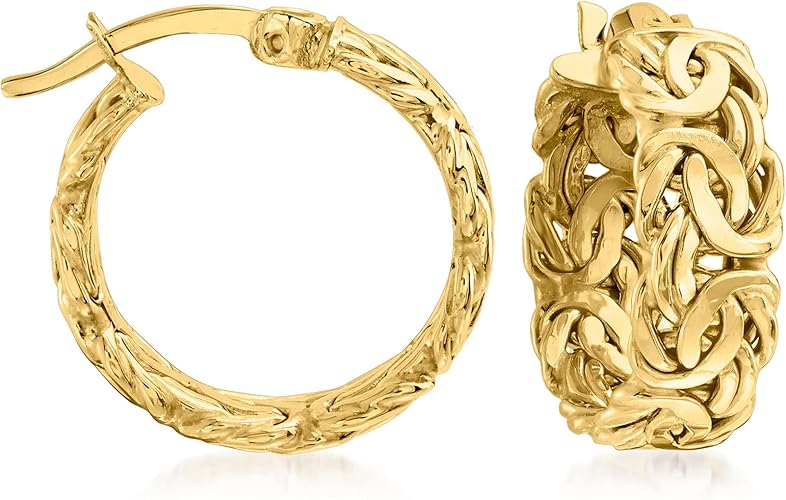 Ross-Simons 18kt Yellow Gold Byzantine-Link Hoop Earrings