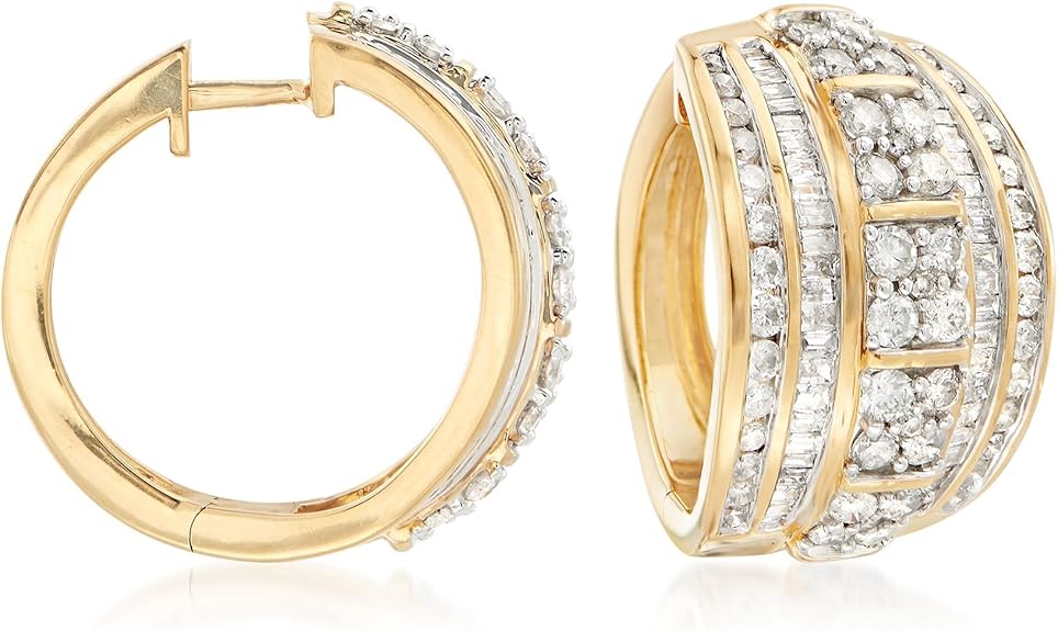 Ross-Simons 3.00 ct. t.w. Round and Baguette Diamond Hoop Earrings in 18kt Gold Over Sterling