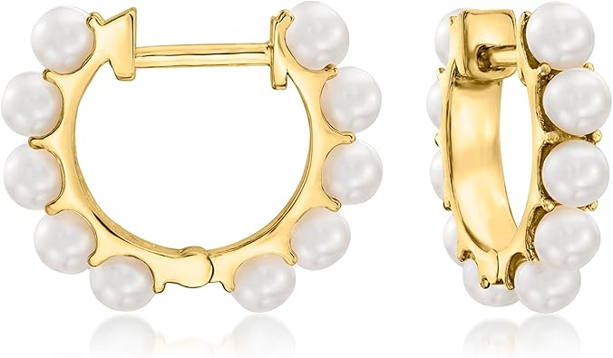 Ross-Simons 3-3.5mm Cultured Pearl Huggie Hoop Earrings in 18kt Gold Over Sterling