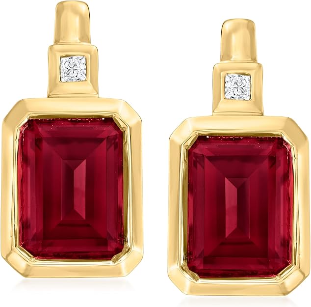 Ross-Simons 3.30 ct. t.w. Garnet Earrings With Diamond Accents in 14kt Yellow Gold