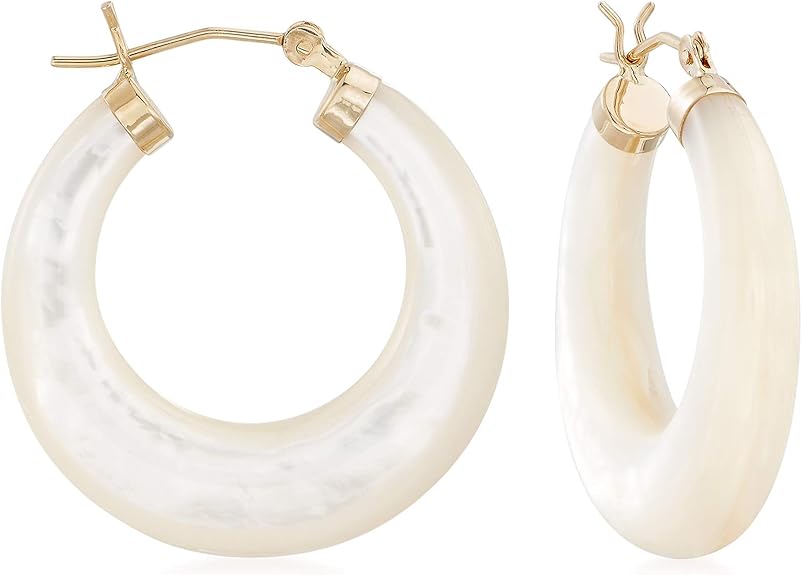 Ross-Simons Mother-Of-Pearl Hoop Earrings With 14kt Yellow Gold