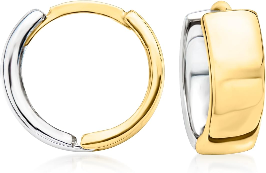 Ross-Simons Sterling Silver and 14kt Yellow Gold Reversible Huggie Hoop Earrings