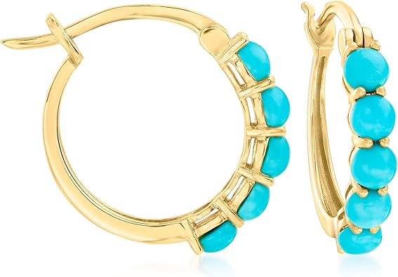 Ross-Simons Turquoise Hoop Earrings in 18kt Gold Over Sterling
