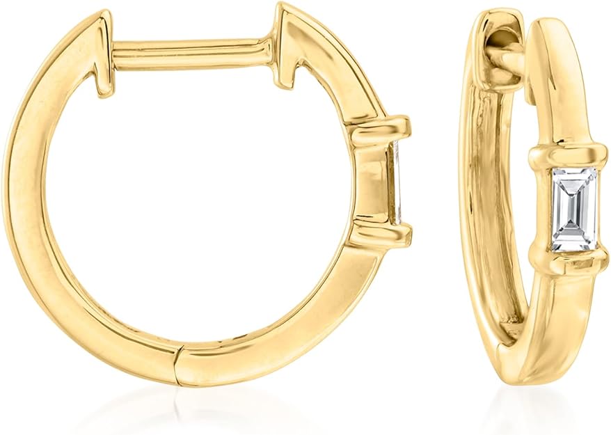 RS Pure by Ross-Simons Baguette Diamond-Accented Huggie Hoop Earrings in 14kt Yellow Gold