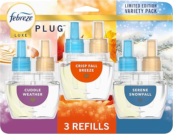 Febreze Plug In Air Freshener, Odor-Fighting Scented Oil Refill, Air Fresheners for Home and Bathroom and Kitchen, Long Lasting for Strong Odors, Premium Holiday Mix, 0.87oz Refills, 3 Count